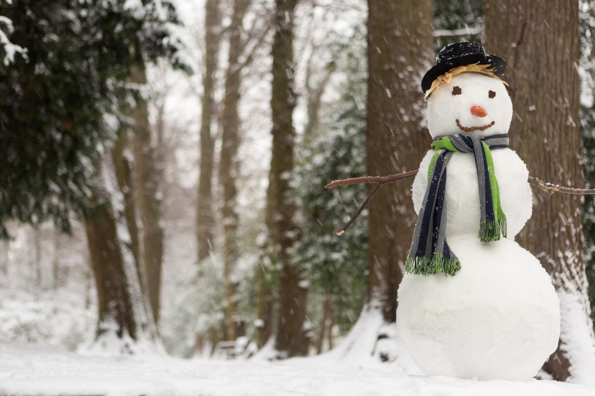 Beau bonhomme de neige se trouve dans la forêt près de l'arbreBeau bonhomme de neige se trouve dans la forêt près de l'arbre