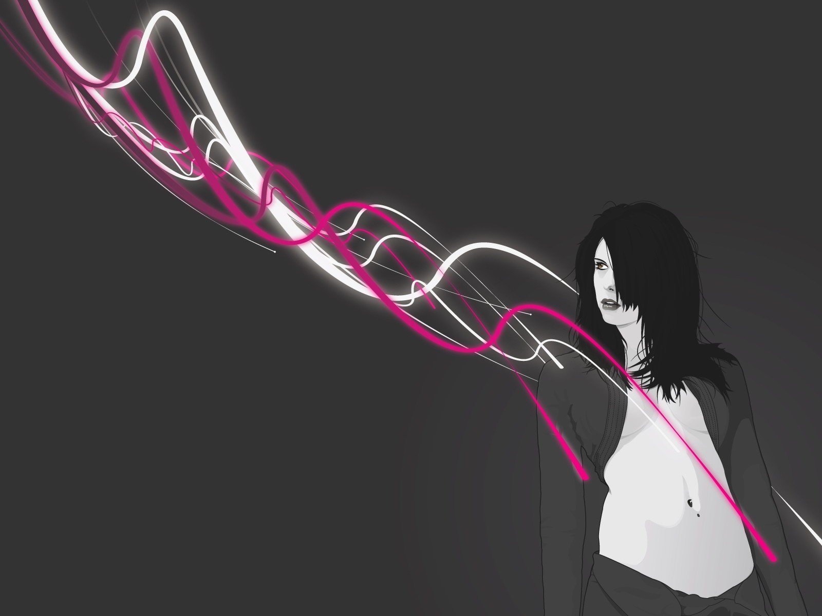 Image noir et blanc de la jeune fille sur fond de lignes roses et blanchesImage noir et blanc de la jeune fille sur fond de lignes roses et blanches