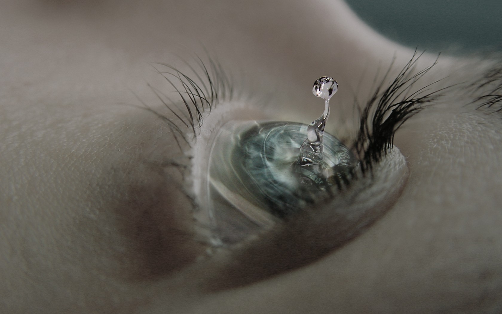 Une goutte d'eau a frappé directement dans l'œil ouvertUne goutte d'eau a frappé directement dans l'œil ouvert