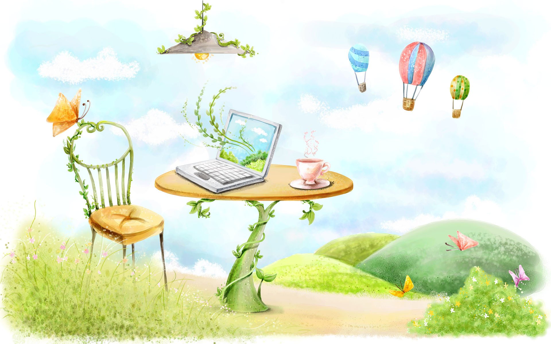 Un bureau avec un ordinateur portable sur fond de cielUn bureau avec un ordinateur portable sur fond de ciel
