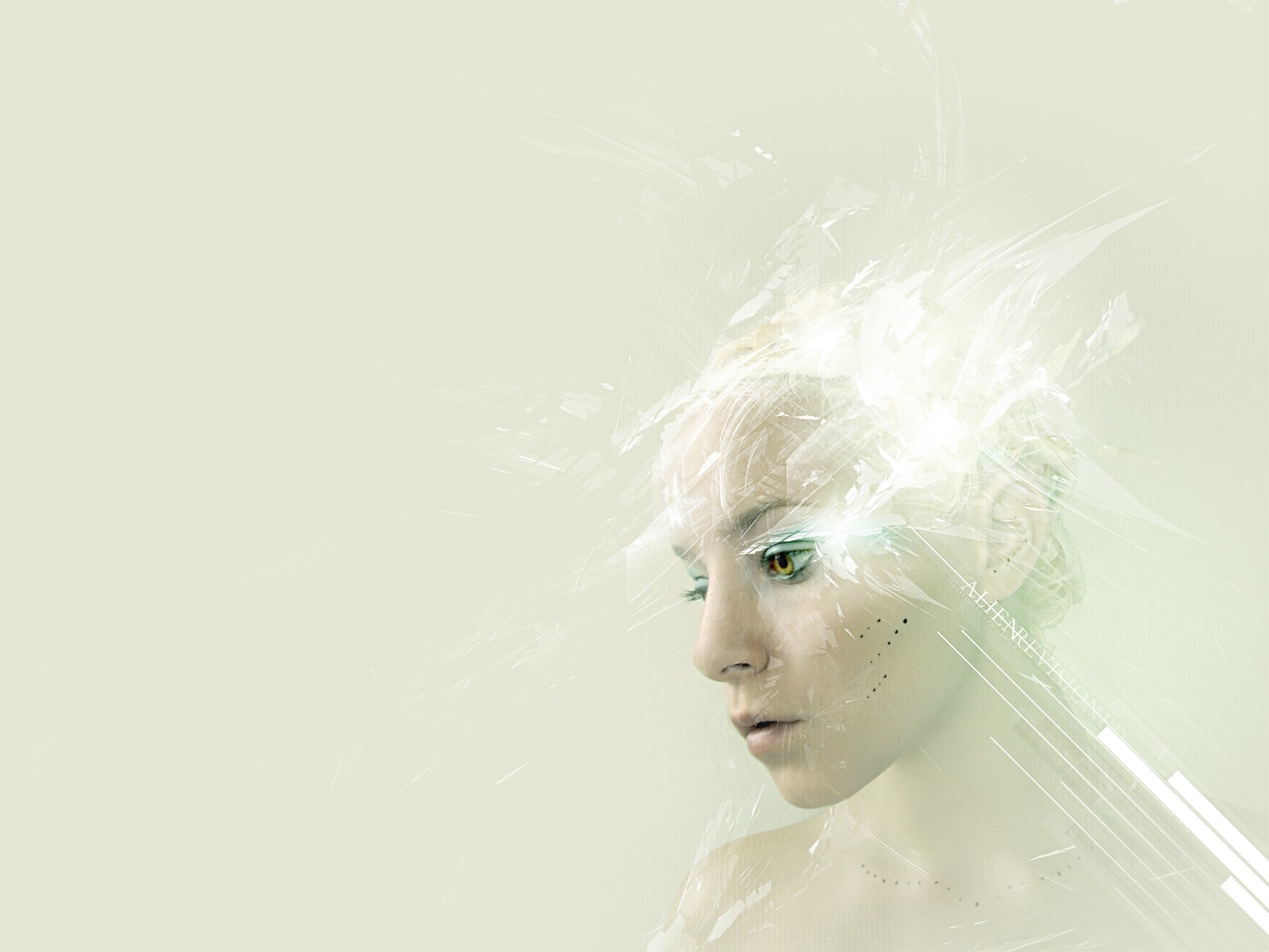 Fille en paillettes blanches avec un regard tristeFille en paillettes blanches avec un regard triste
