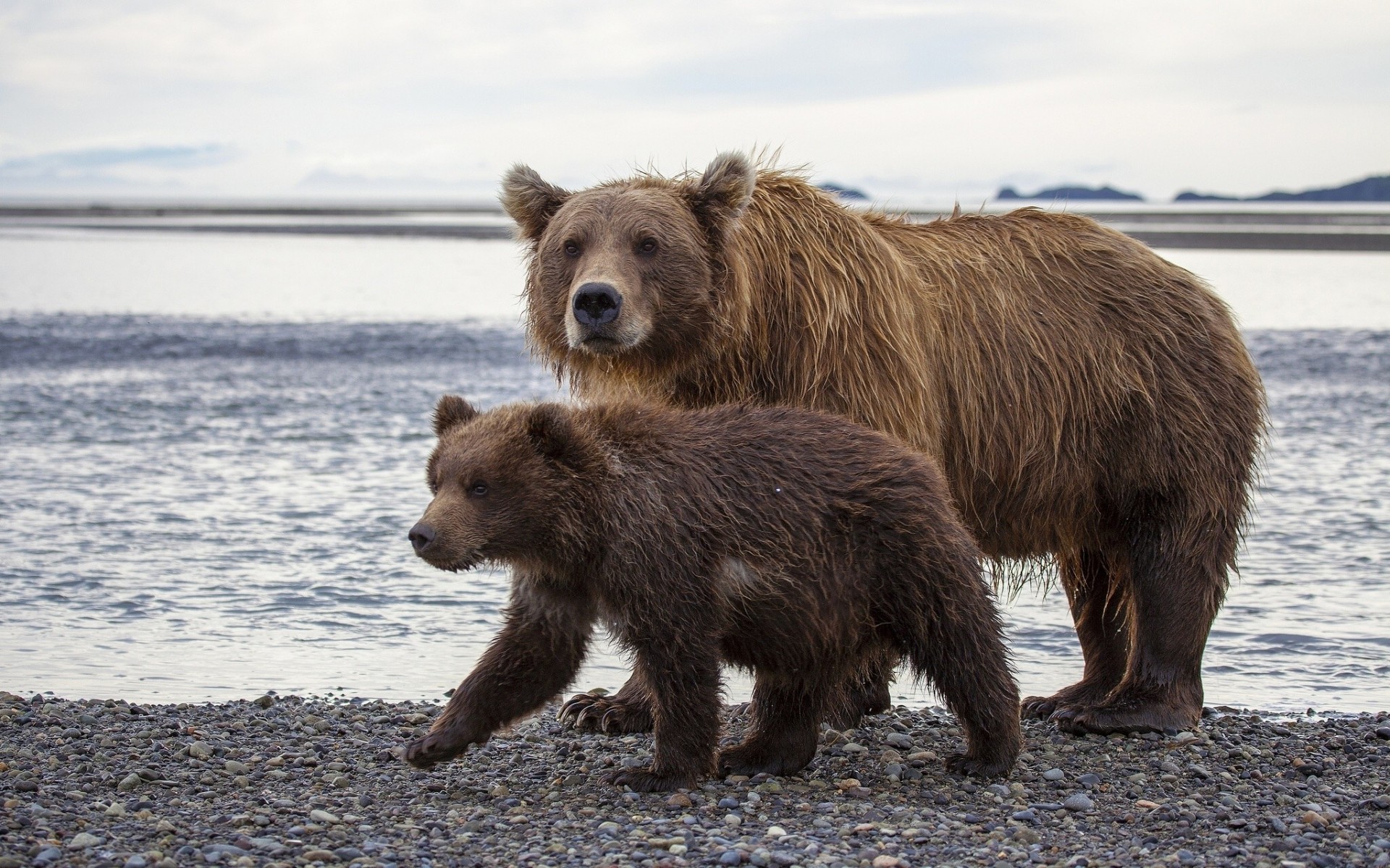 Ours sur le chanvre en bois joue avec un autre oursOurs sur le chanvre en bois joue avec un autre ours