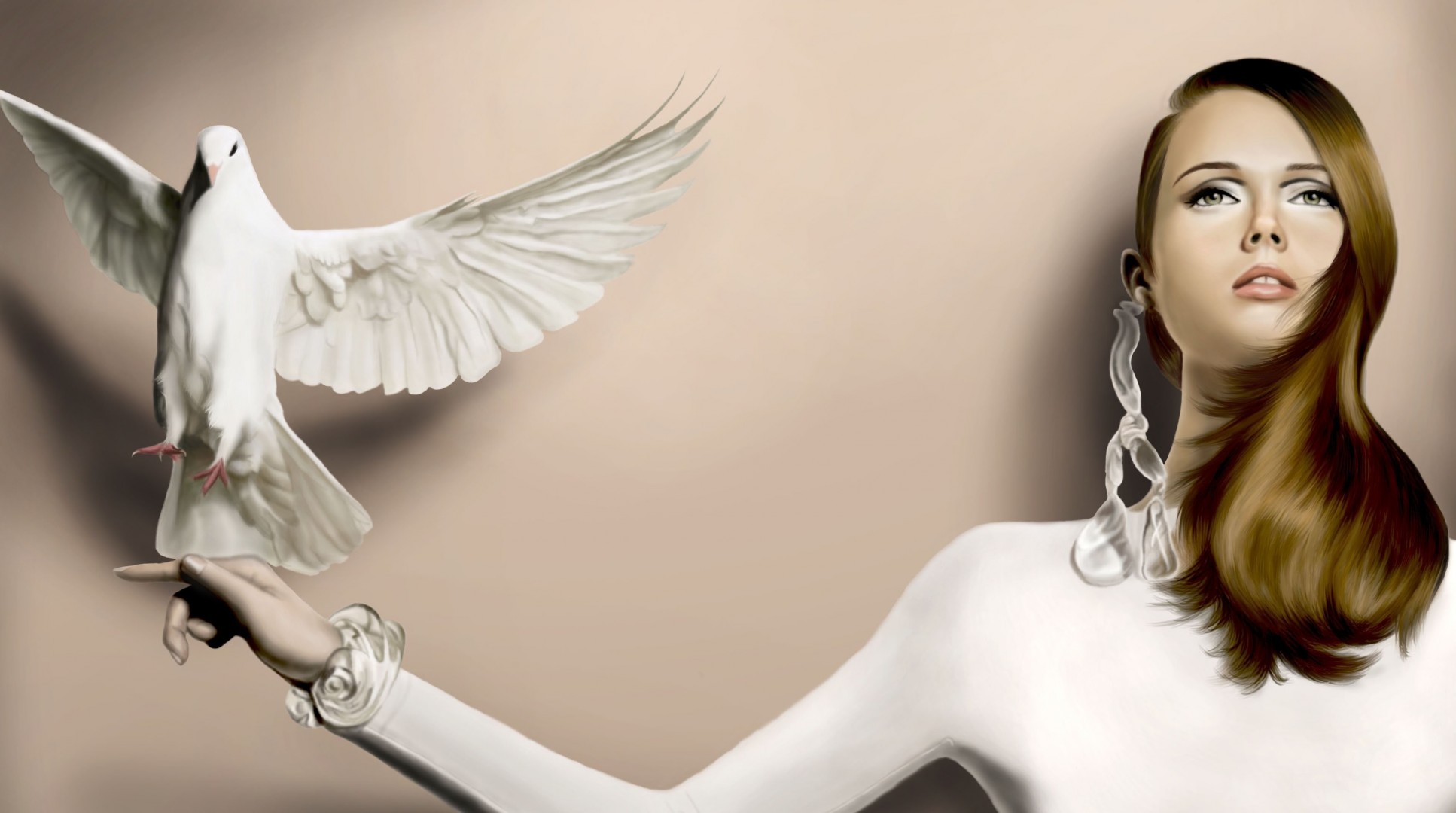 Fille avec une belle boucle d'oreille tient un pigeon sur la mainFille avec une belle boucle d'oreille tient un Pigeon sur la main