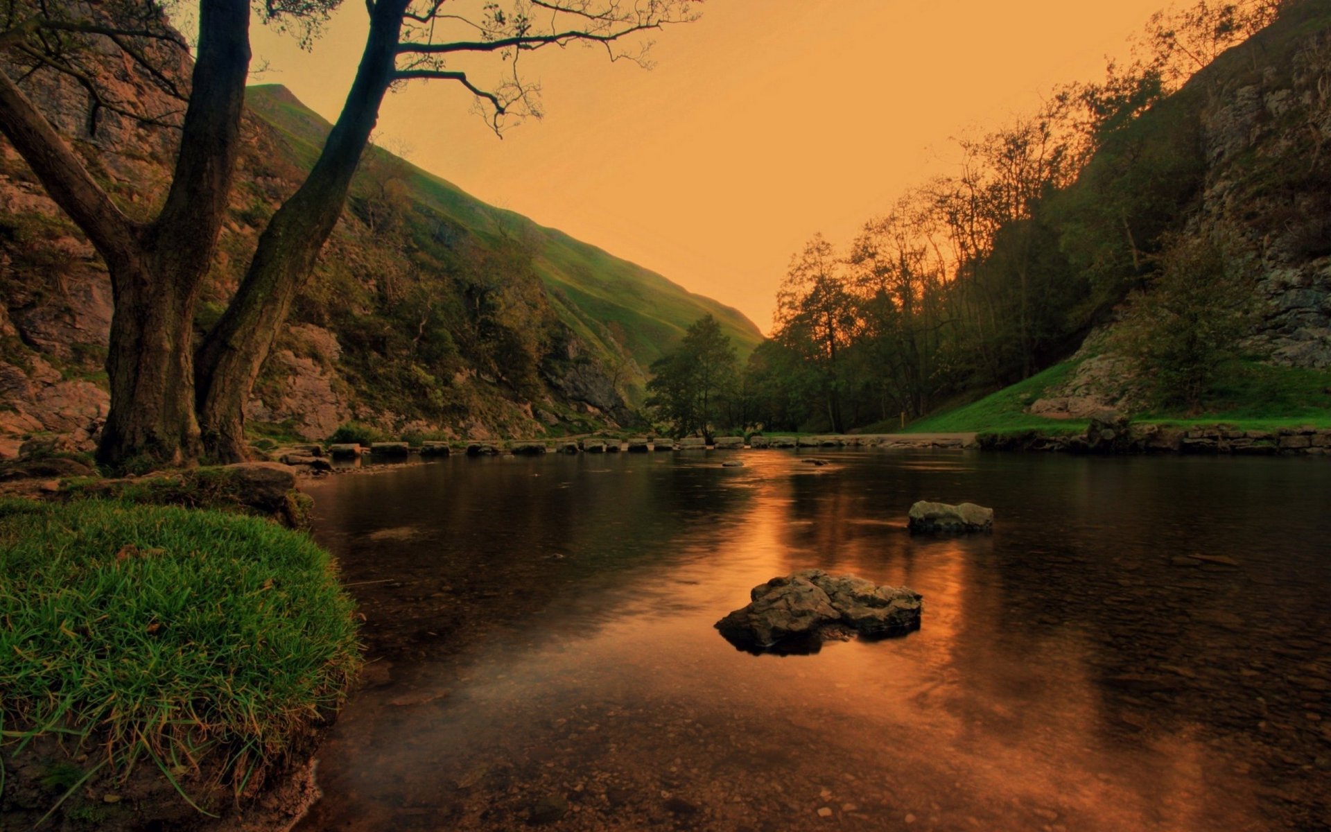 Route à travers le pont en bois dans la forêt du lac. nature indigèneRoute à travers le pont en bois dans la forêt du lac. Nature indigène
