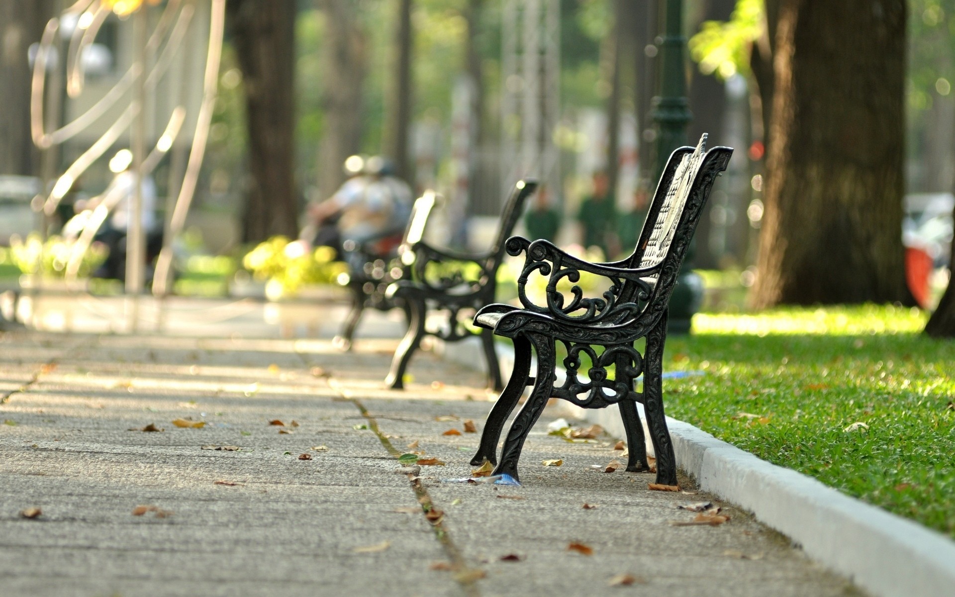 Paysage d'été-bancs gracieux sur fond d'arbres du parcPaysage d'été-bancs gracieux sur fond d'arbres du parc