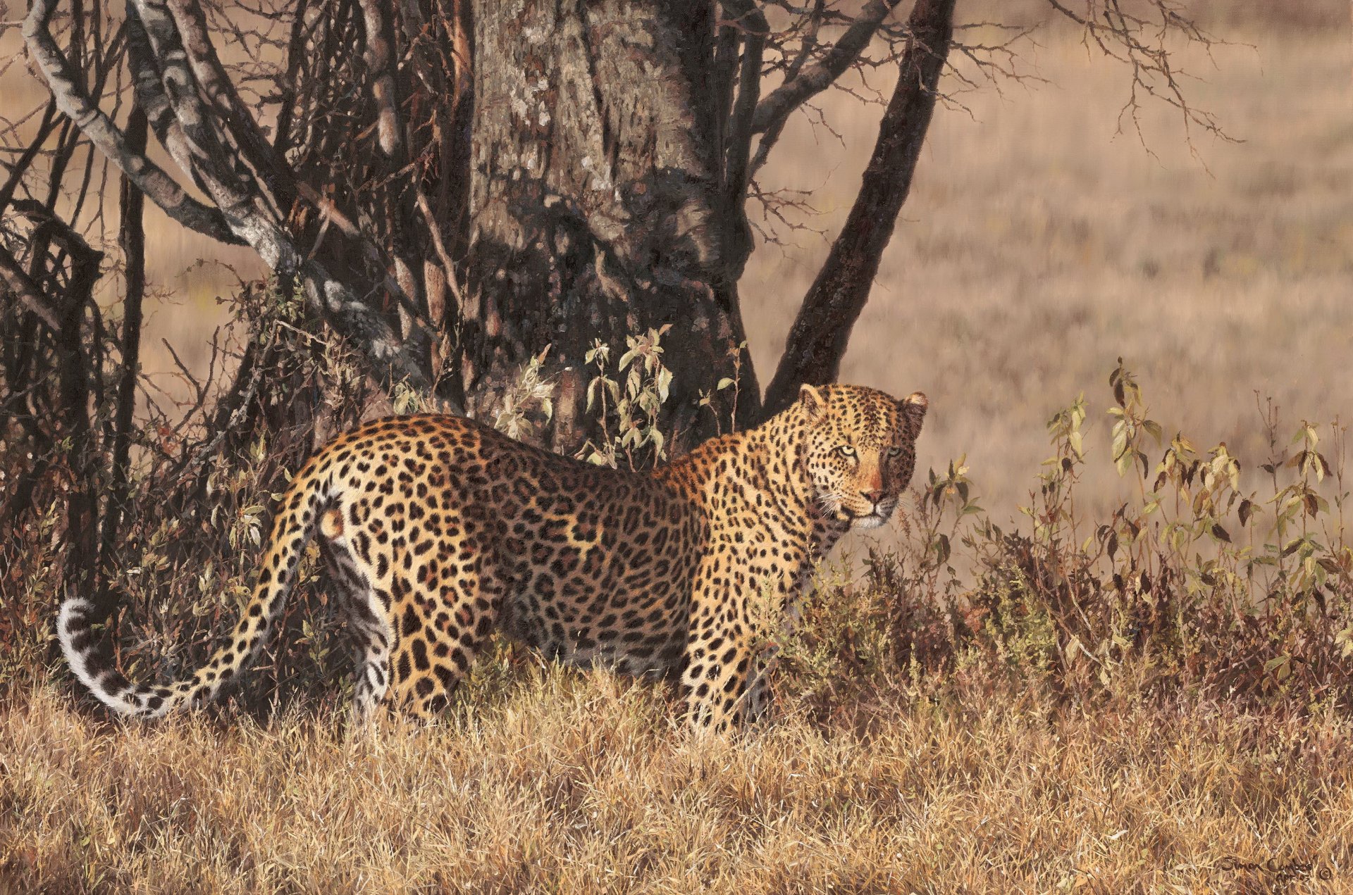 Léopard de luxe se dresse sur un tronc d'arbre secLéopard de luxe se dresse sur un tronc d'arbre sec