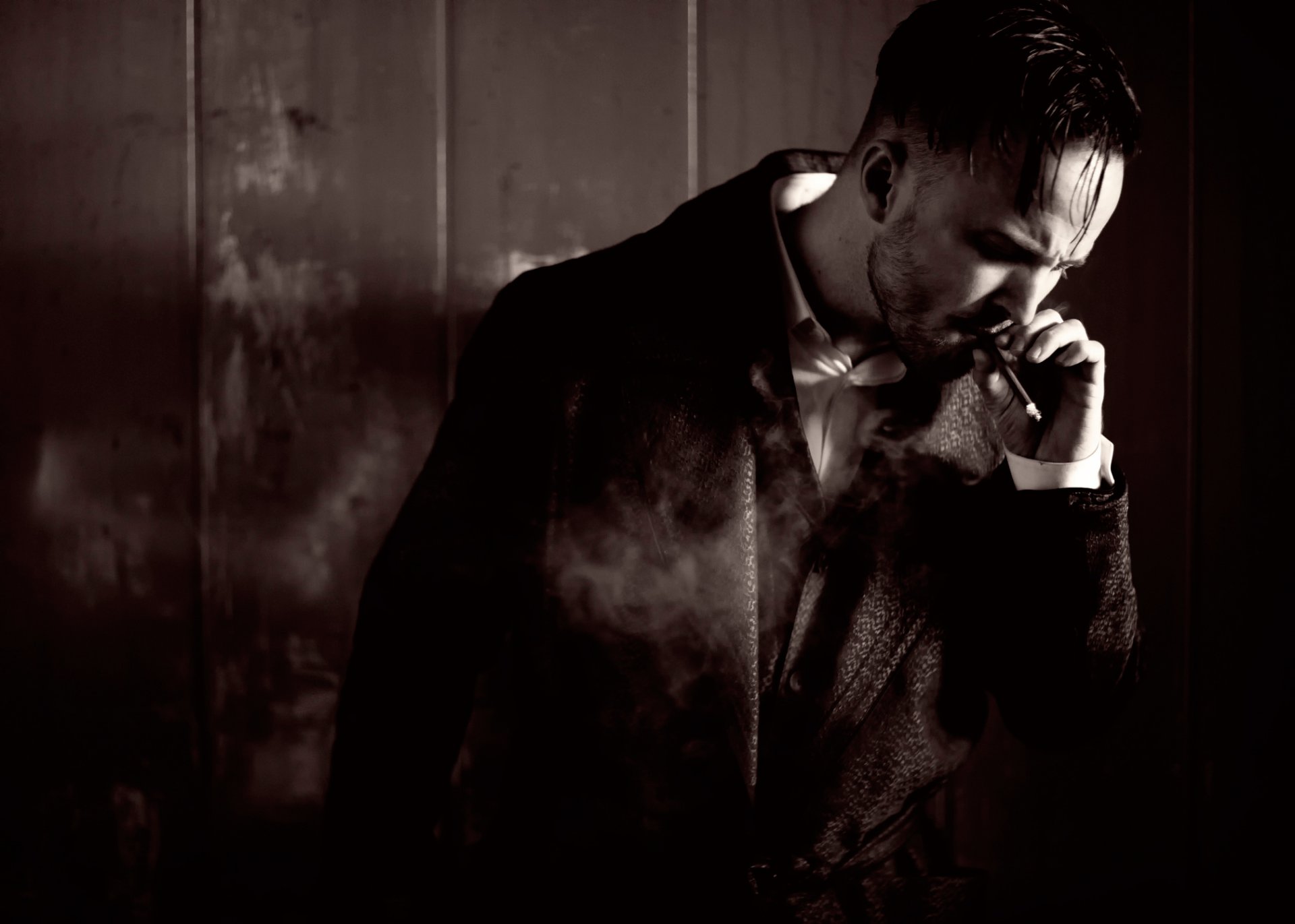 Séance photo de fumer une cigarette d'Aaron Paul en juillet 2014