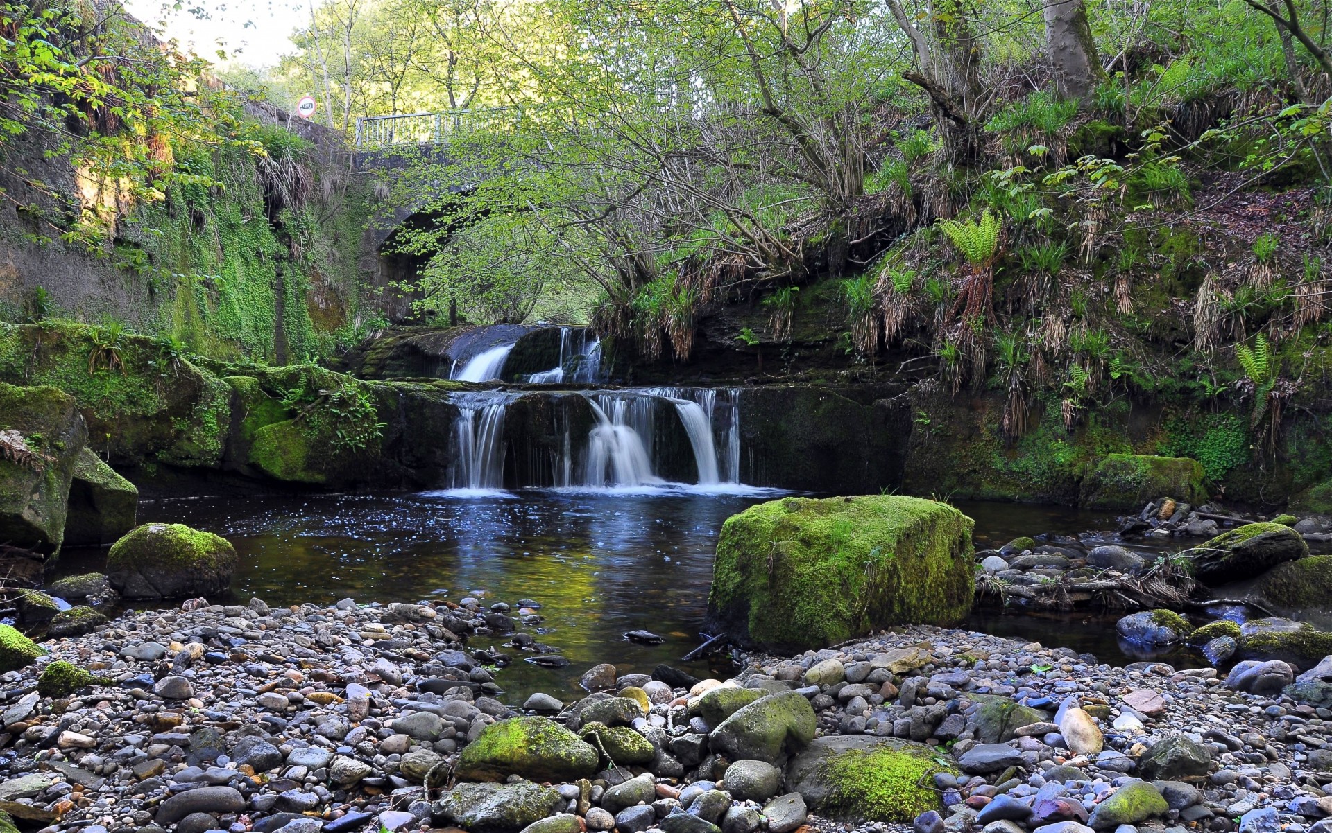L'eau de la cascade s'infiltre à travers de grosses pierresL'eau de la cascade s'infiltre à travers de grosses pierres