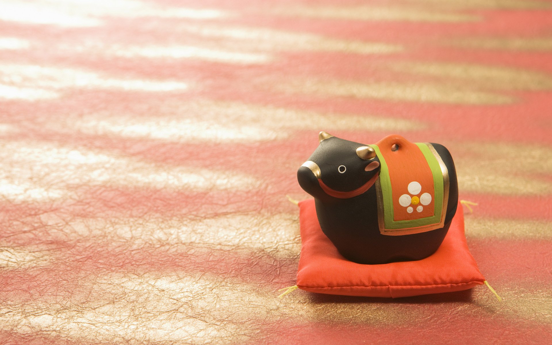 Souvenir d'une petite vache sur un oreiller rouge
