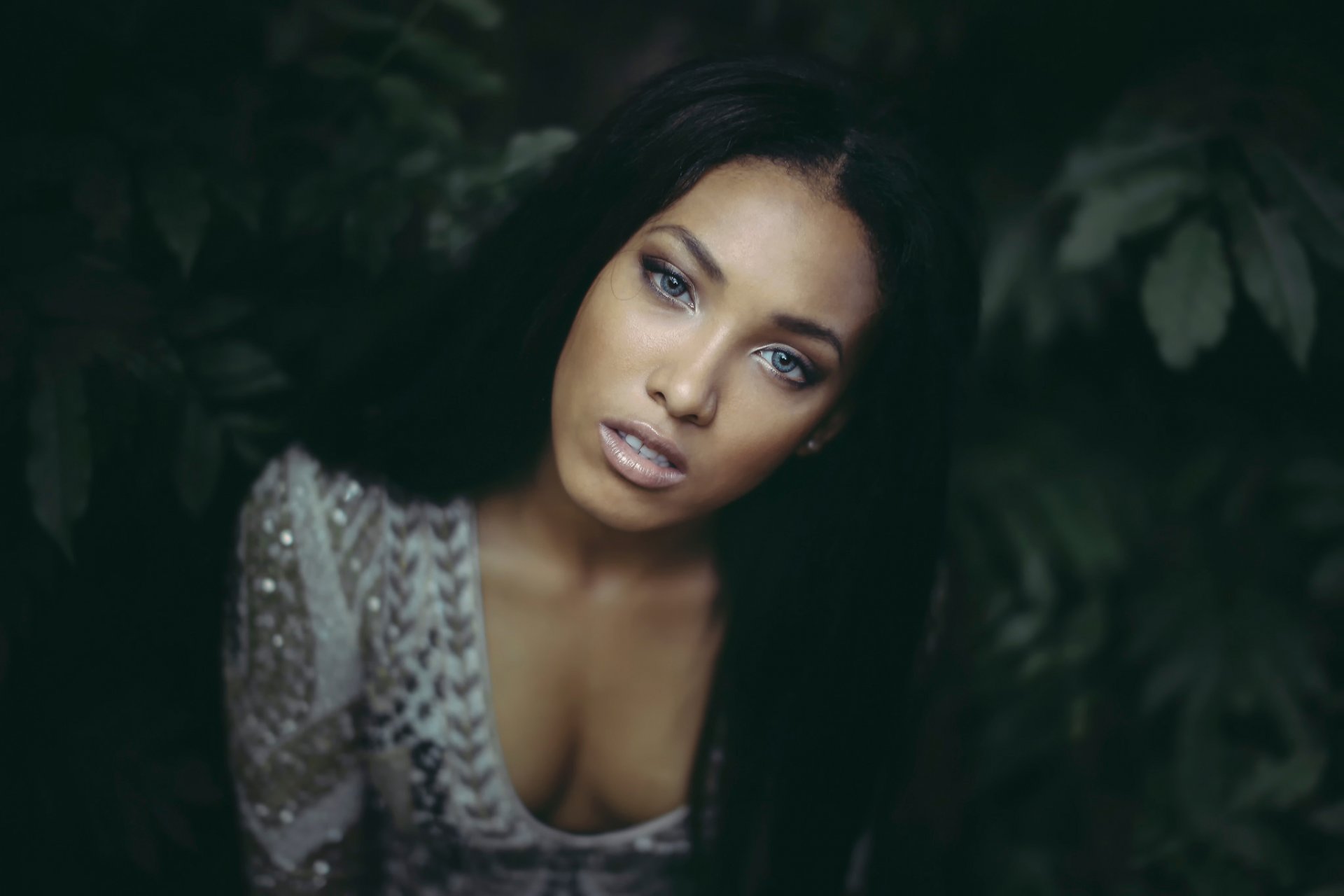 Un regard profond chez une fille avec un décolletéUn regard profond chez une fille avec un décolleté