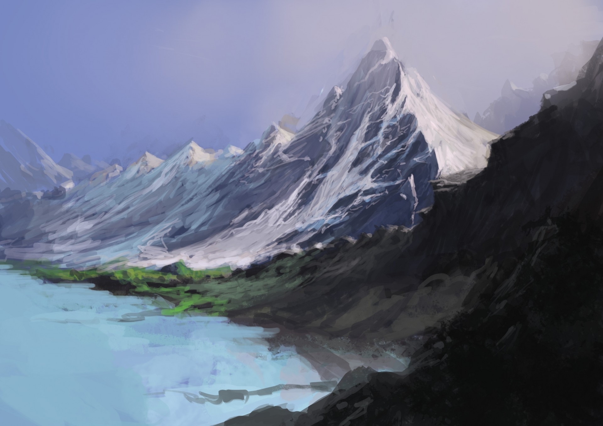 L'art, la planète avec de la neige et des montagnesL'art, la planète avec de la neige et des montagnes