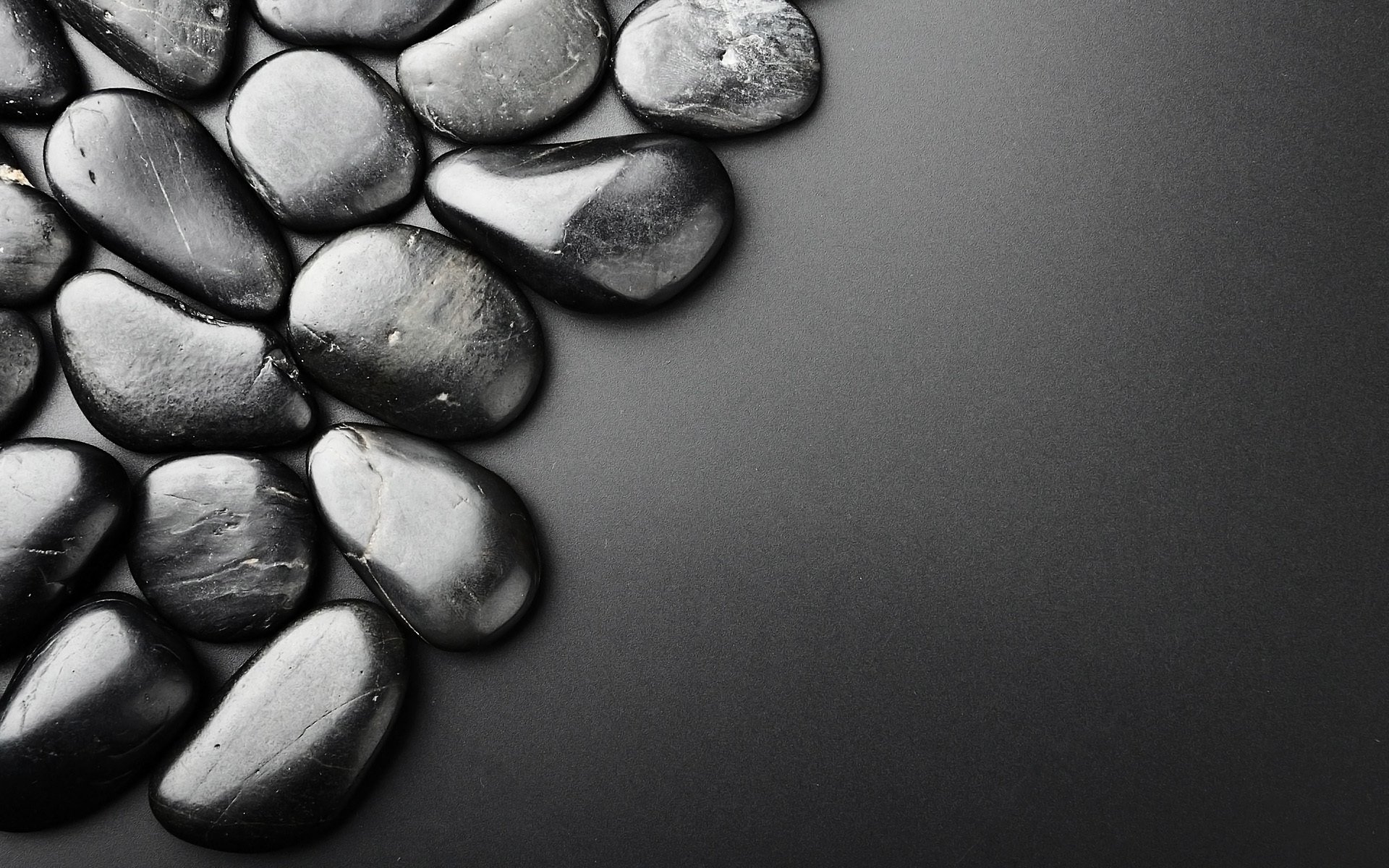 Pierres noires sur verre dépoli