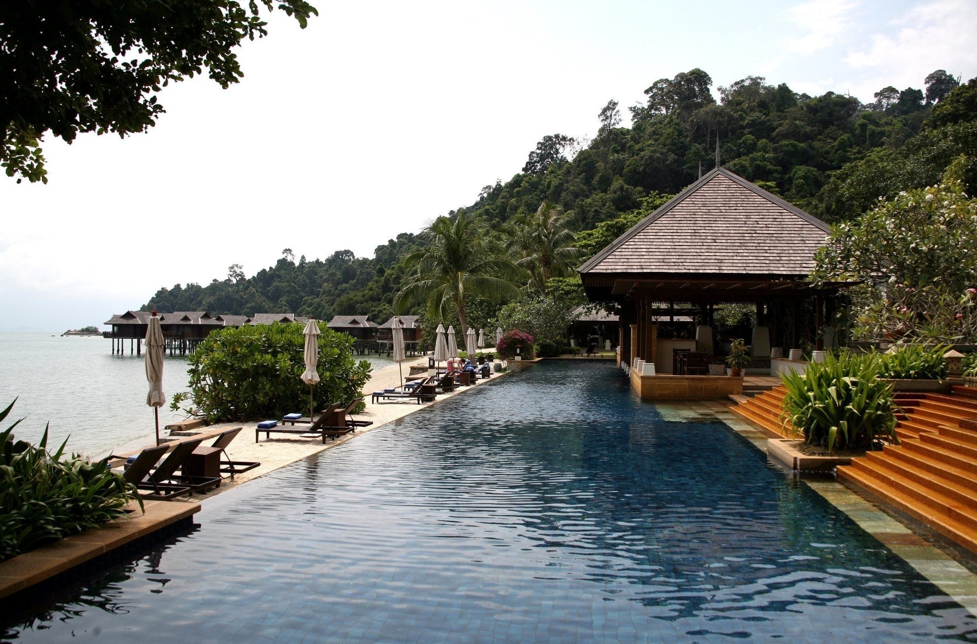 Détendez-vous avec un bel extérieur dans la piscine d'eau bleue