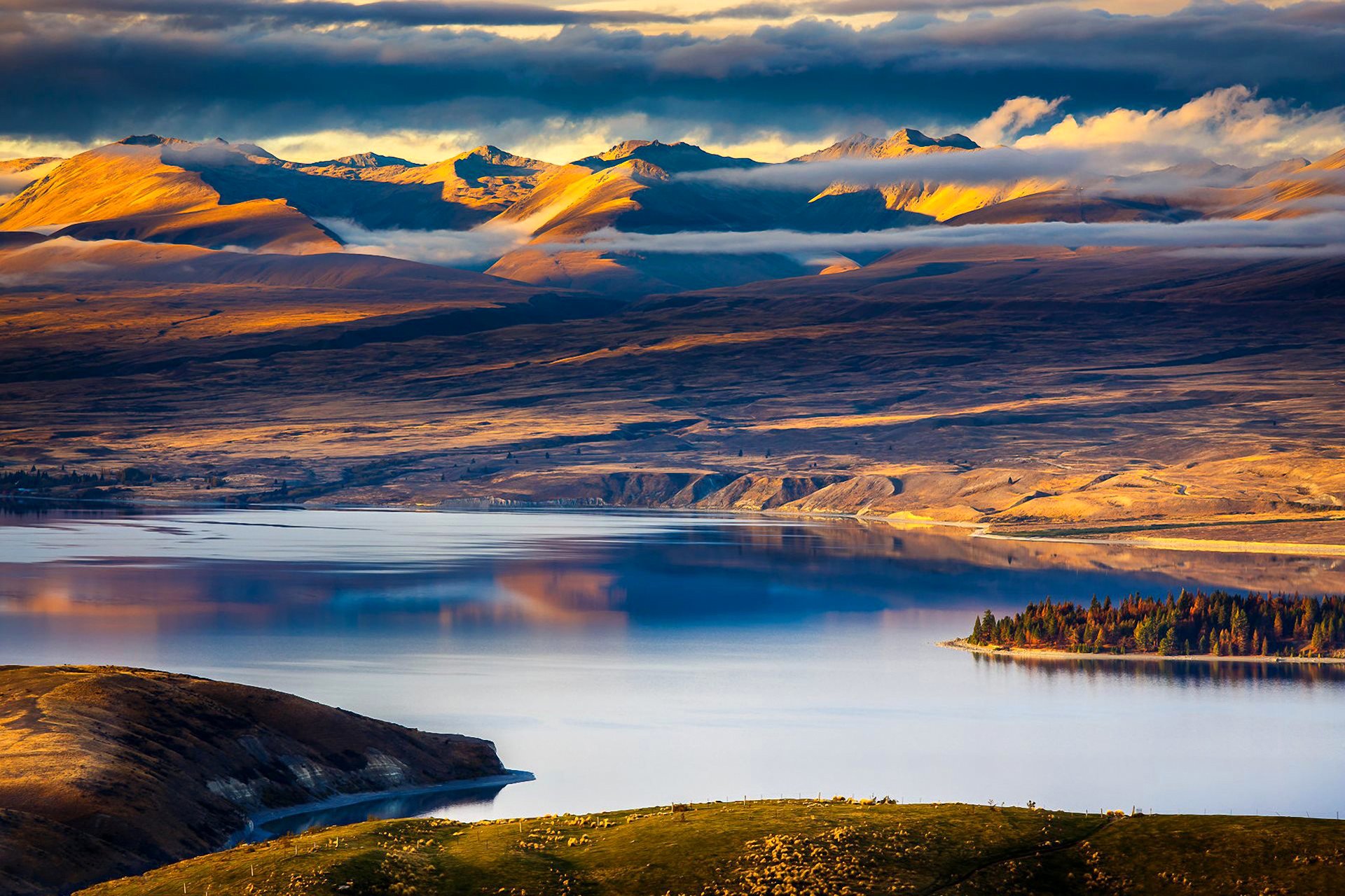 Moutons debout sur la rive de la rivière au coucher du soleilMoutons debout sur la rive de la rivière au coucher du soleil