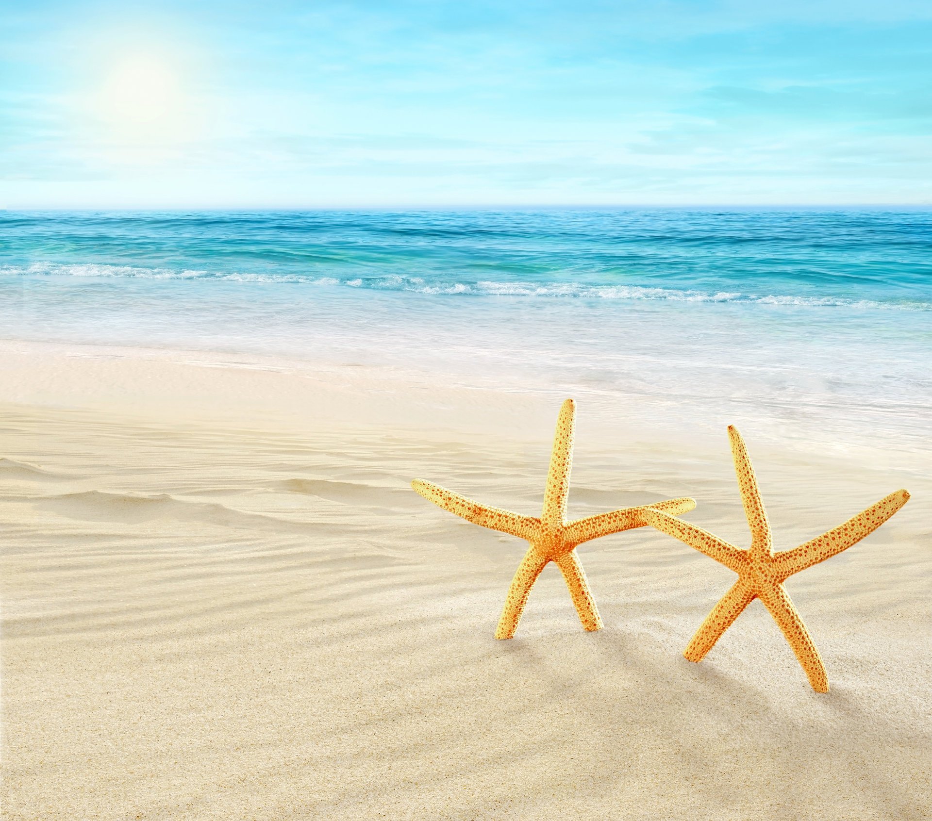 Étoiles de mer au bord de la mer sur une plage blanche comme neige