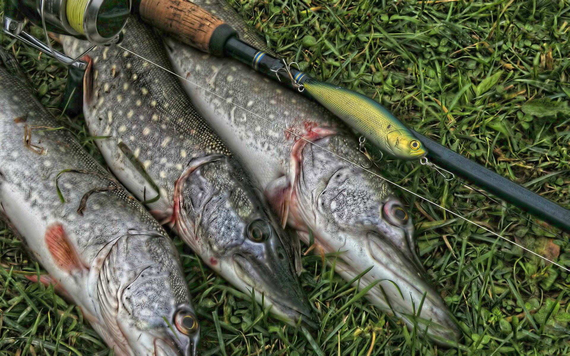 Personnes debout avec des torches et des crânes de poissons géantsPersonnes debout avec des torches et des crânes de poissons géants