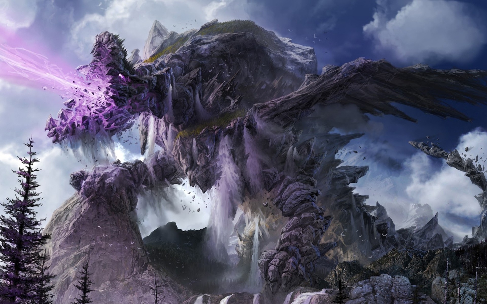 Héros face à face avec un monstre géant aux yeux multiplesHéros face à face avec un monstre géant aux yeux multiples