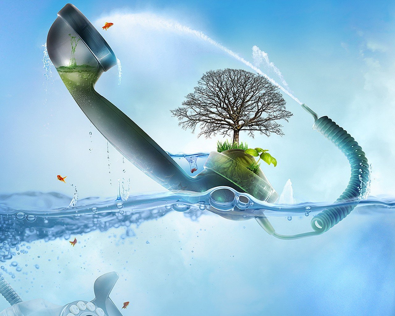Un arbre de plus en plus dans осколке sous l'eau