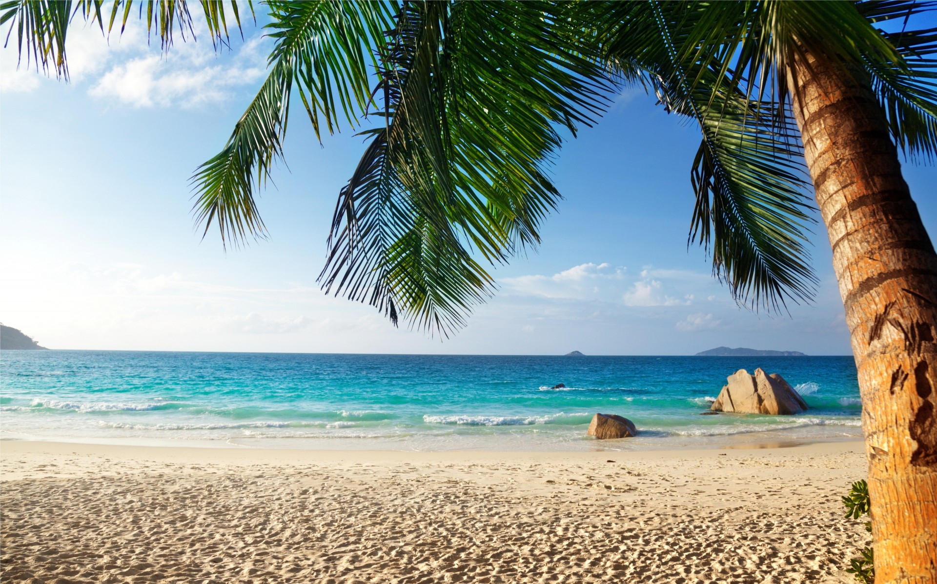 Plage de sable d'été et un endroit sous un palmierPlage de sable d'été et un endroit sous un palmier