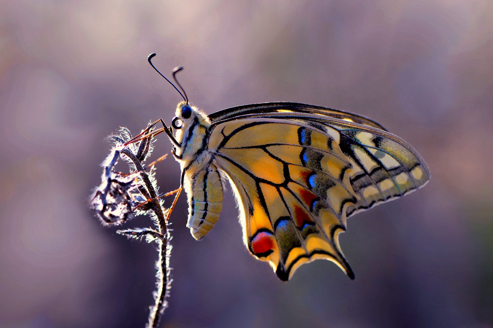Papillon assis sur une plante avec des bourgeons jaunesPapillon assis sur une plante avec des bourgeons jaunes