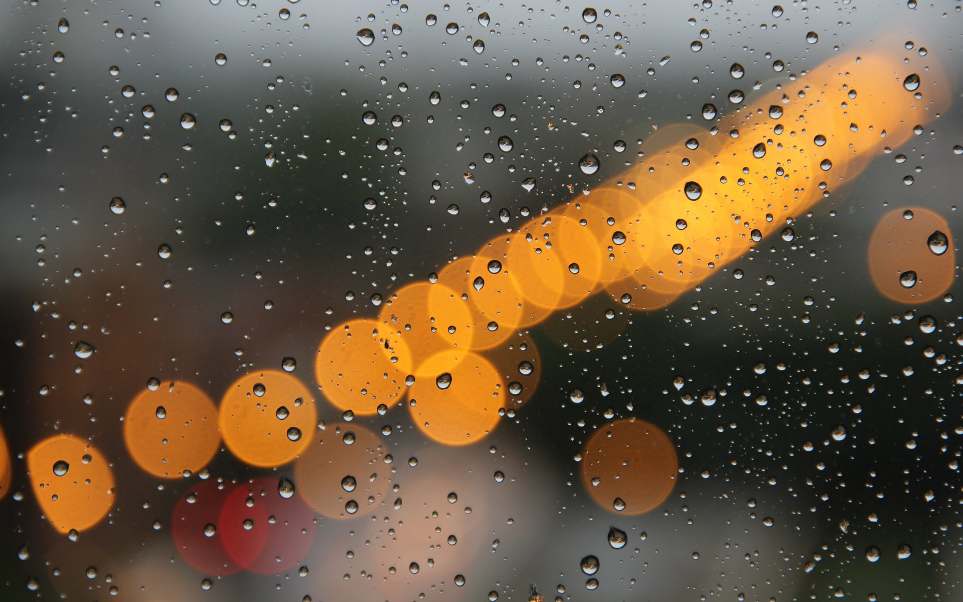 Prise de vue macro d'une goutte sur le verre et l'éblouissement des lanternesPrise de vue macro d'une goutte sur le verre et l'éblouissement des lanternes