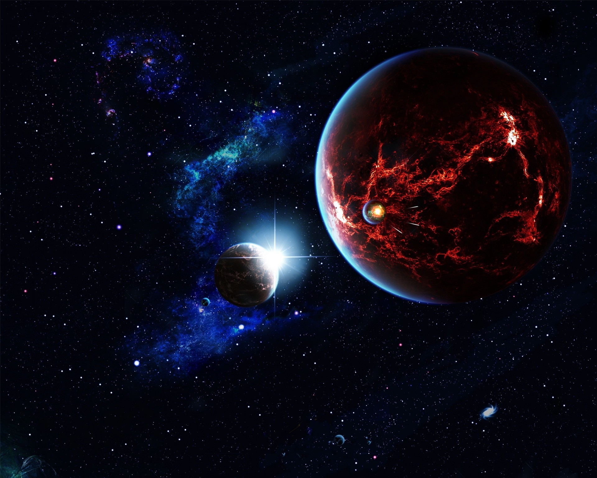 Planète d'art 3d dans l'espace sur fond de galaxie