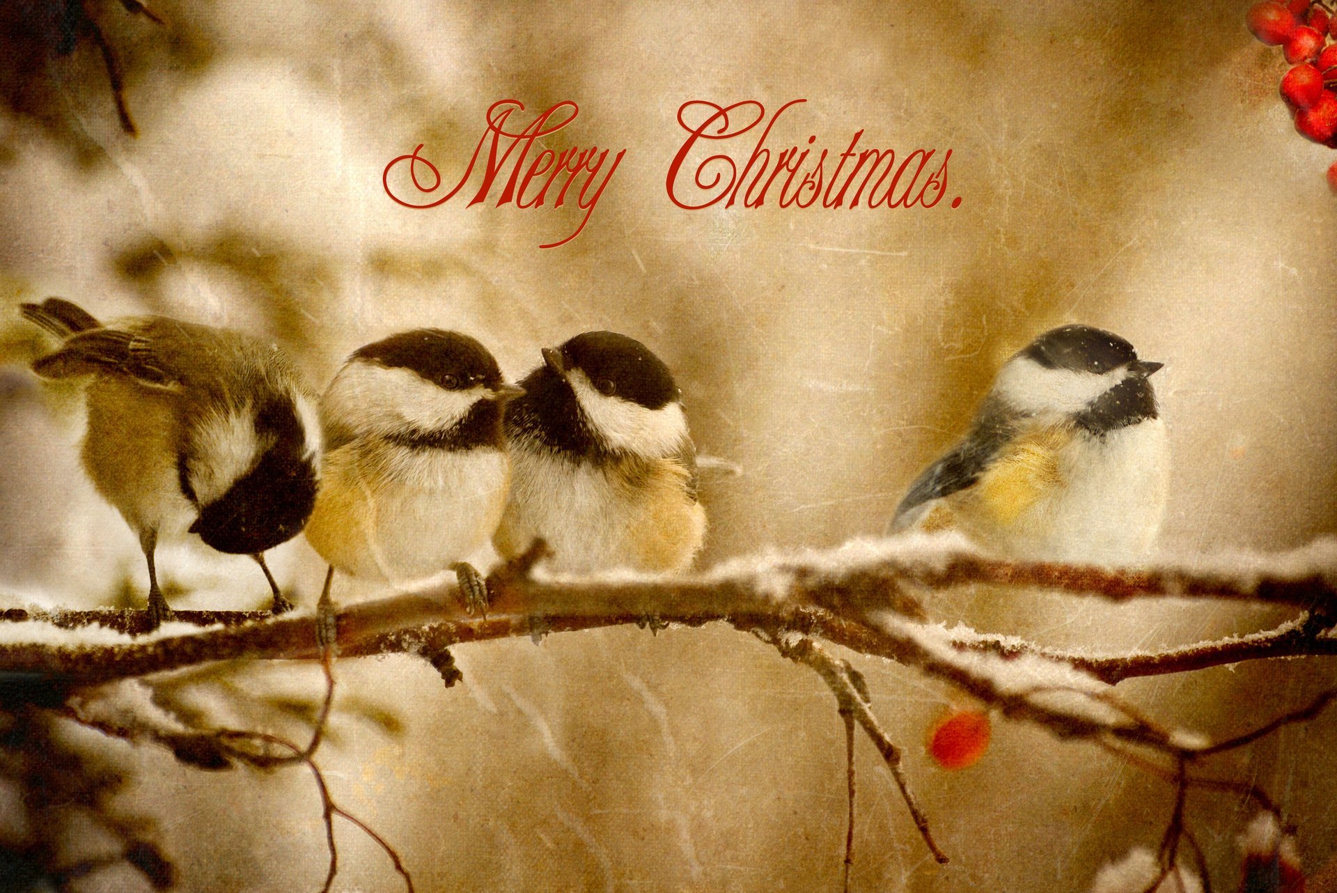 Quatre mésanges sur une branche avec des baies rougesQuatre mésanges sur une branche avec des baies rouges
