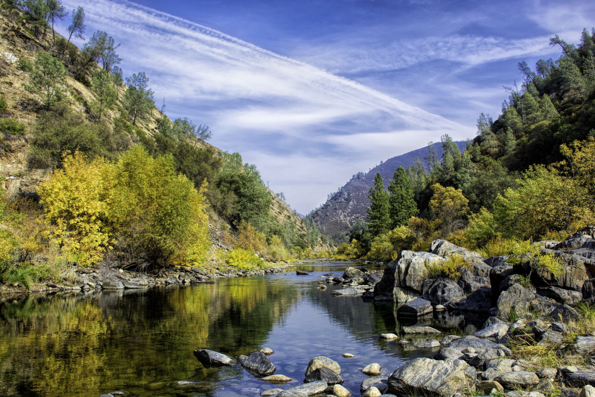 Paysage de ruisseau rocheux dans la forêt d'automne