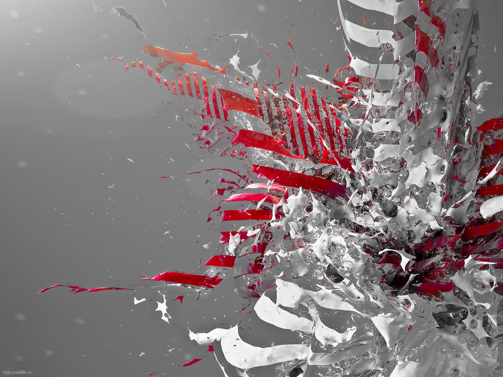 Explosion de peinture rouge et blanche sur fond grisExplosion de peinture rouge et blanche sur fond gris