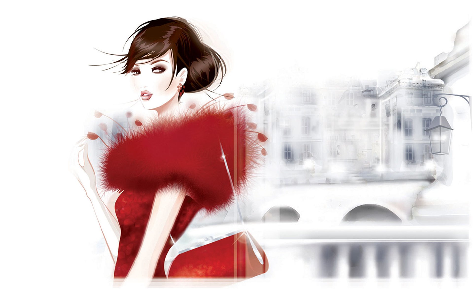 Illustration d'une jeune fille en rouge se promène dans la villeIllustration d'une jeune fille en rouge se promène dans la ville