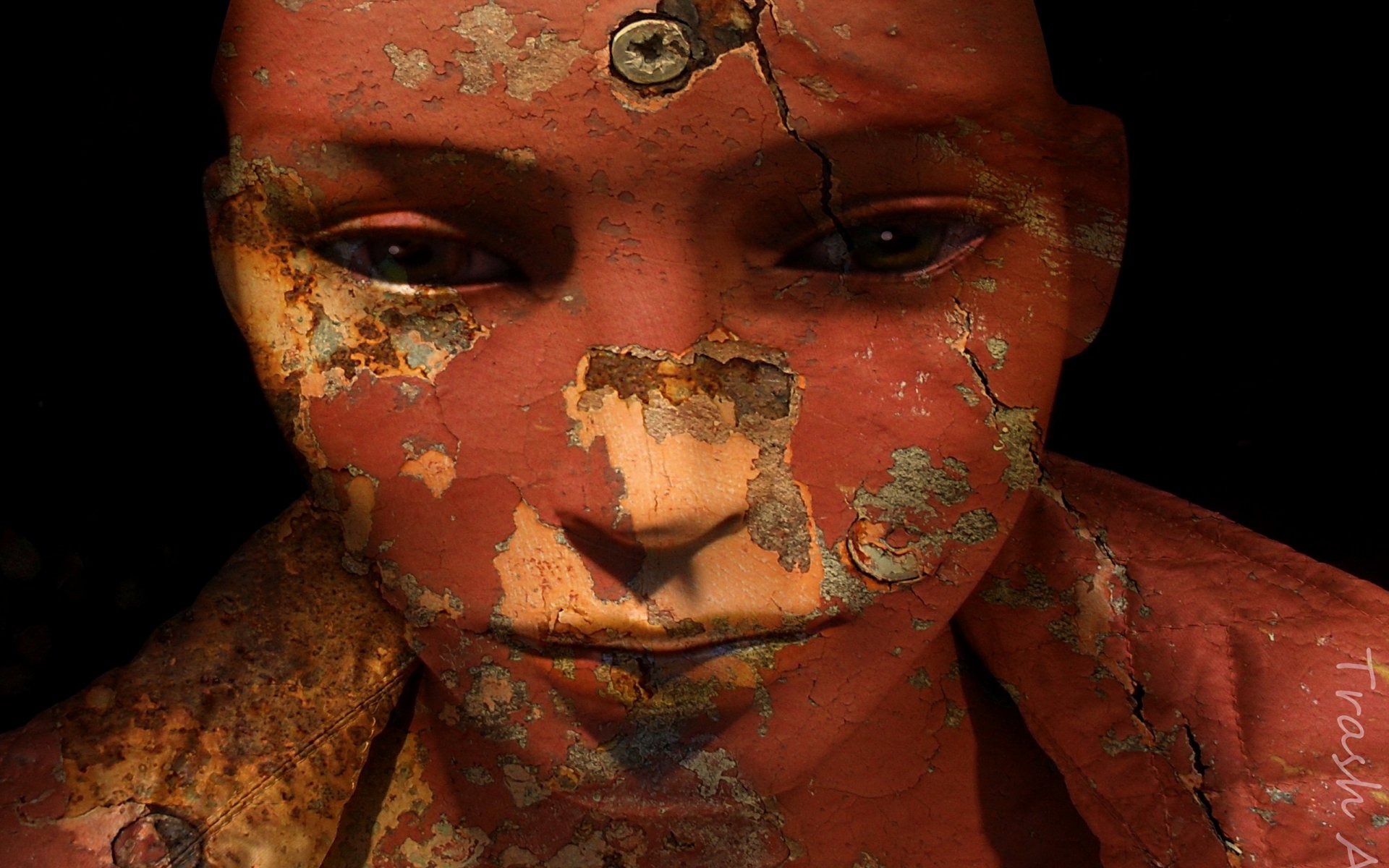 Vieille sculpture de couleur orange avec des fissuresVieille sculpture de couleur orange avec des fissures