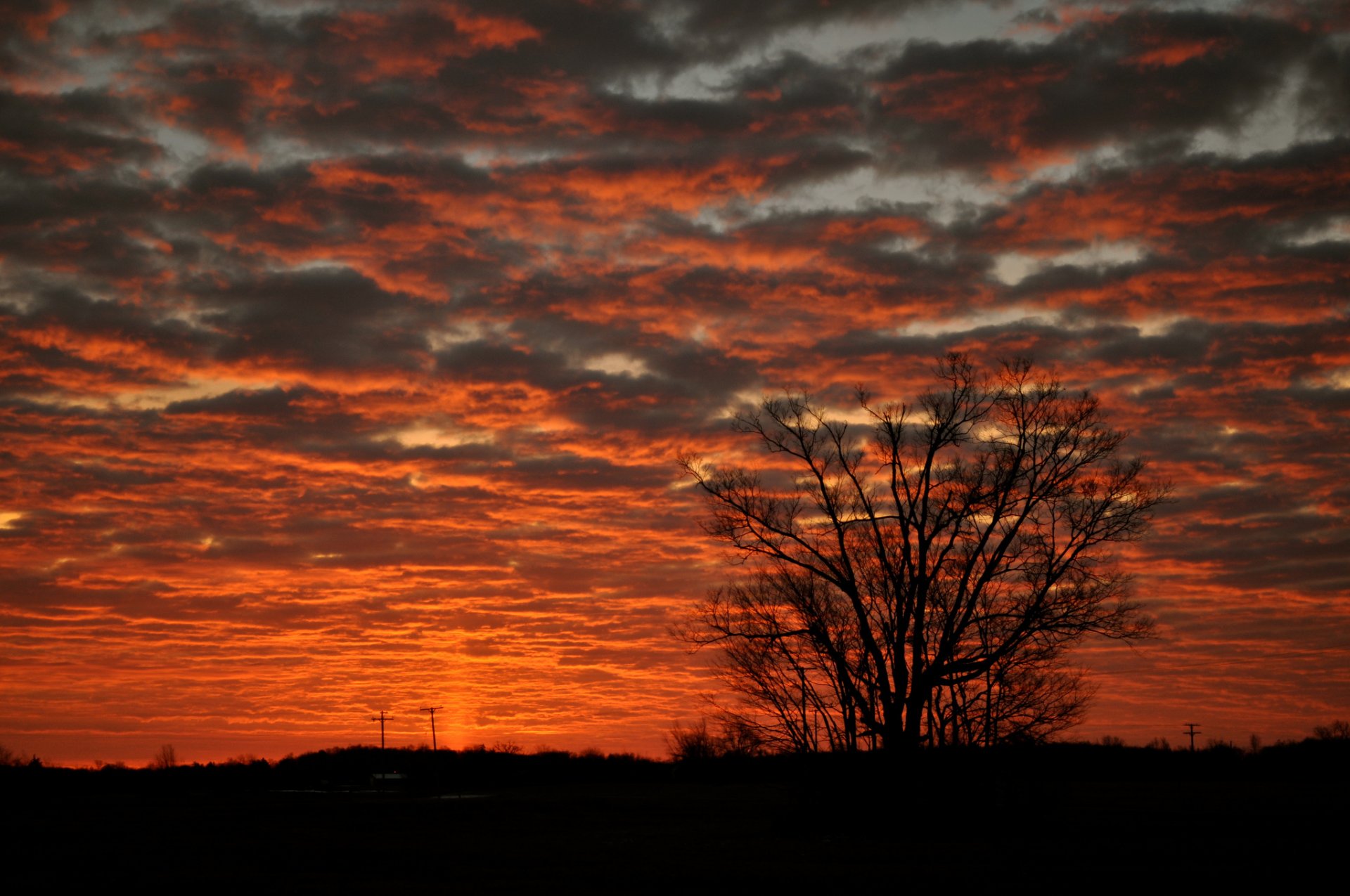 Silhouette d'arbre et d'herbe sur fond de coucher de soleil rougeSilhouette d'arbre et d'herbe sur fond de coucher de soleil rouge