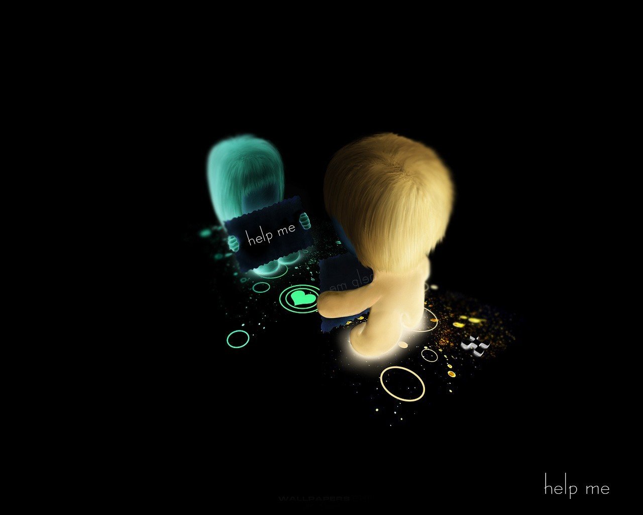 Deux personnes sur fond sombre. Help mi