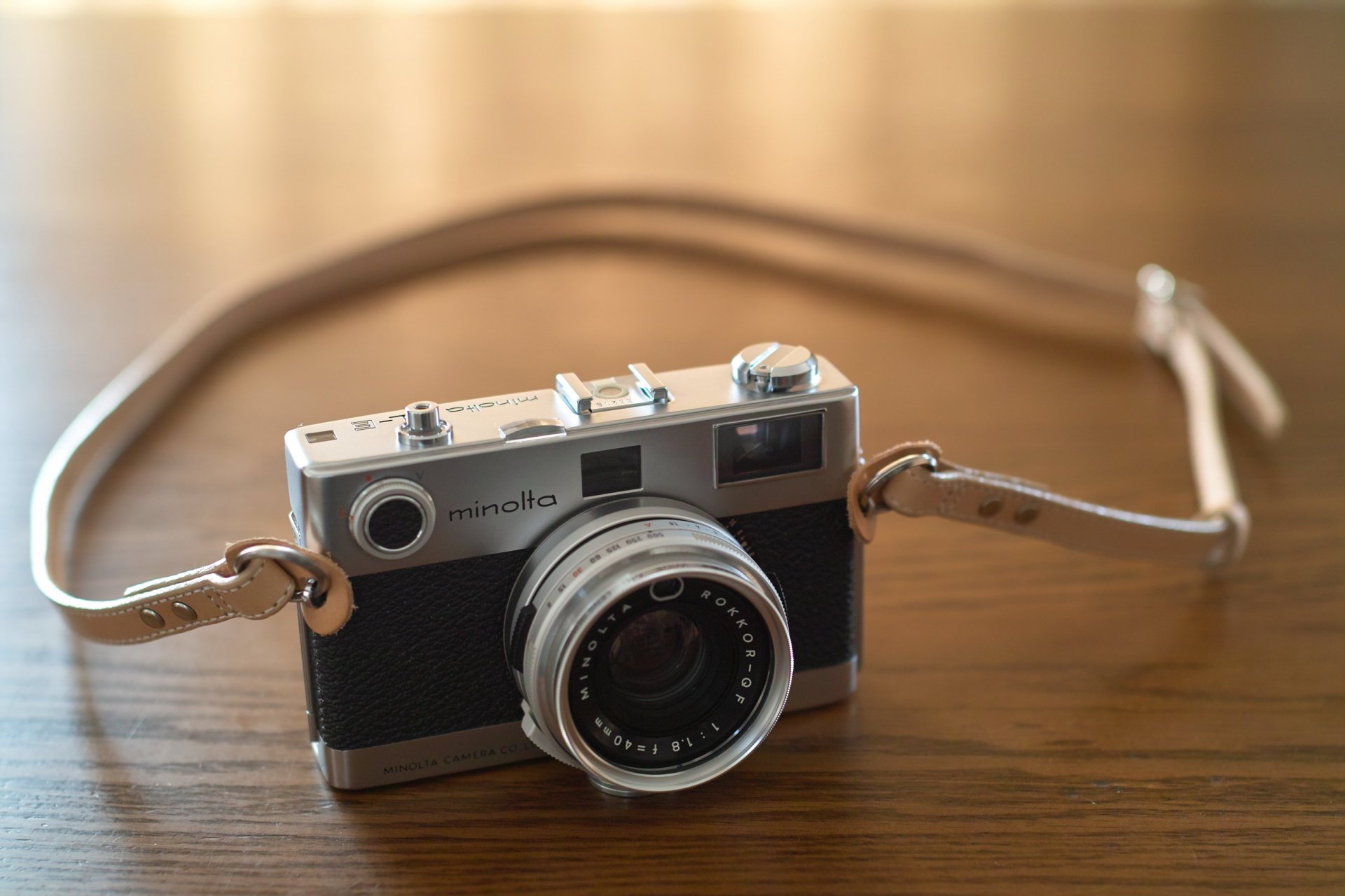 Appareil photo minola sur la table sous le soleil