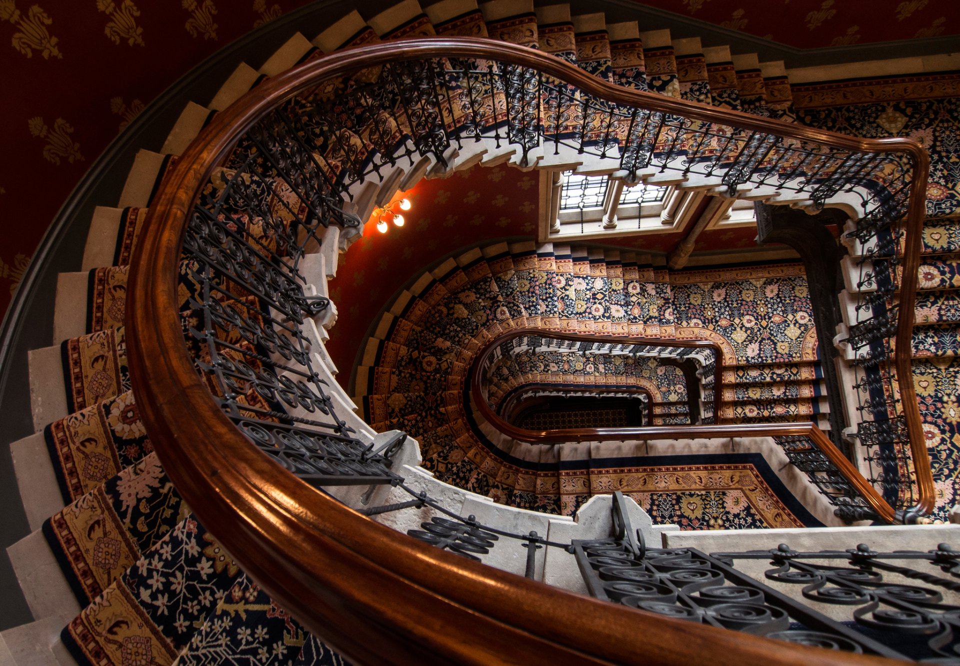 Ancien escalier dans l'entrée d'un bâtiment délabré