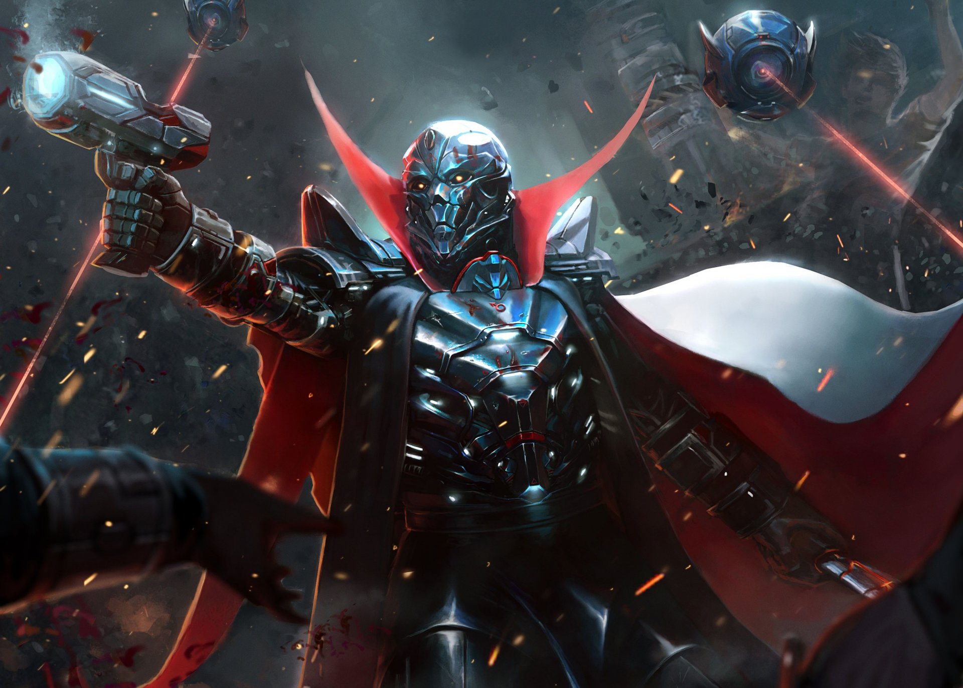 Super-héros maléfique au milieu de la bataille