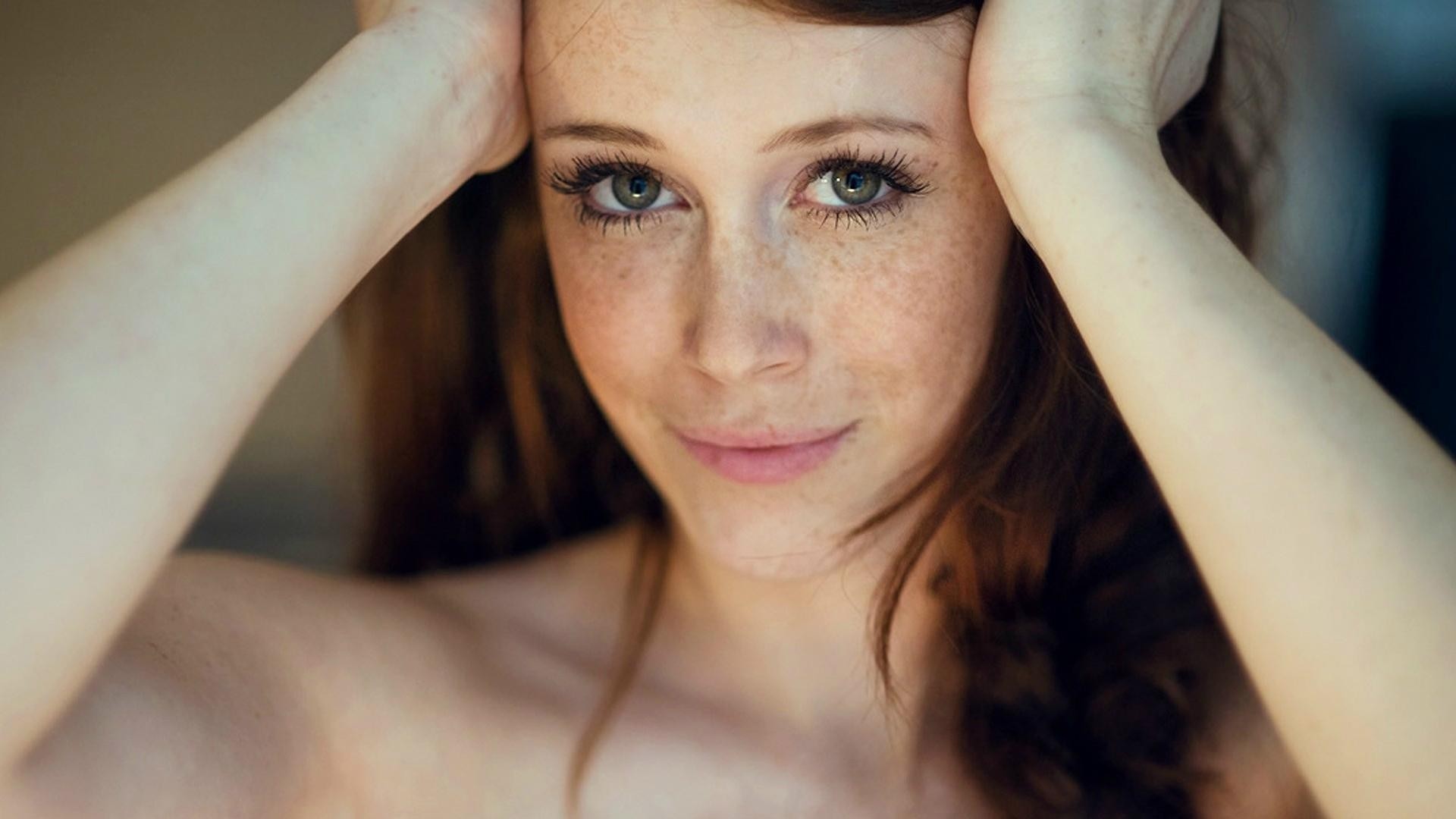 Fille avec des taches de rousseur posant sur la cameFille avec des taches de rousseur posant sur la came