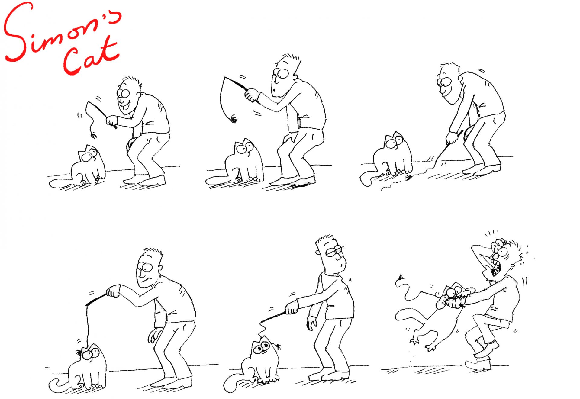 Le chat blanc de simon joue avec la corde puis mord la main du maîtreLe chat blanc de Simon joue avec la corde puis mord la main du maître