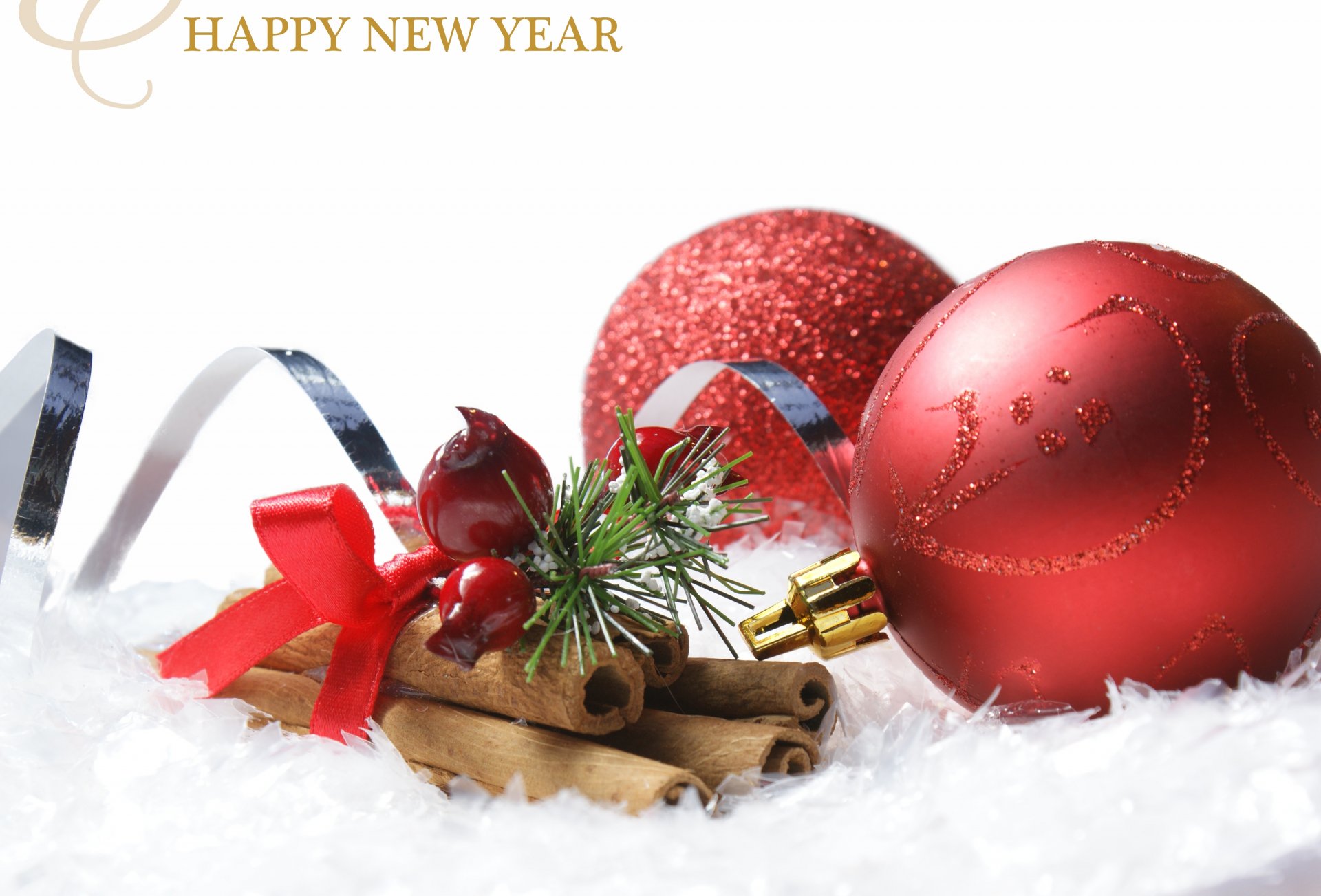 Boules rouges de Noël et cannelle