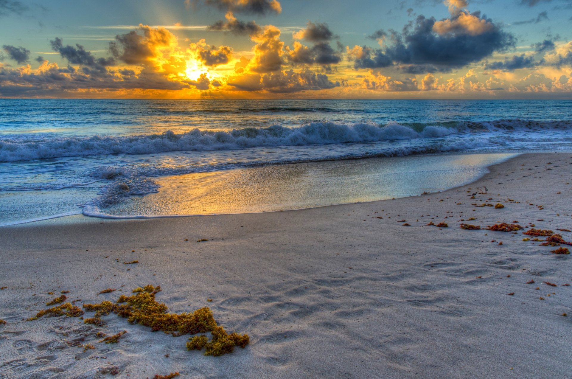 Coucher de soleil rouge sous les tropiques parmi les palmiersCoucher de soleil rouge sous les tropiques parmi les palmiers