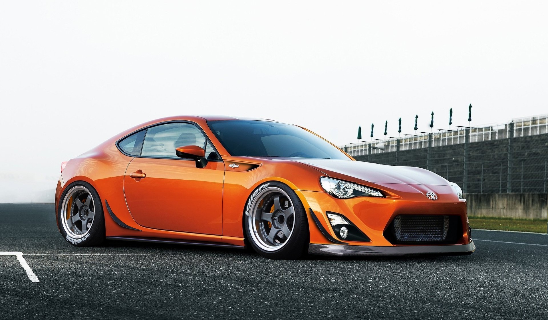 Toyota rouge sur la route. beau paysage avec des moutons et un ciel orangeToyota rouge sur la route. Beau paysage avec des moutons et un ciel orange