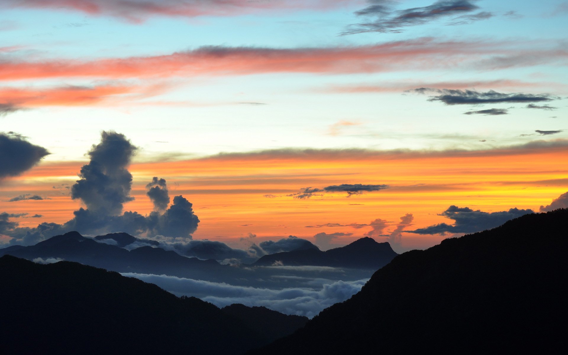Belle vue du soir sur le ciel, les montagnes et la natureBelle vue du soir sur le ciel, les montagnes et la nature