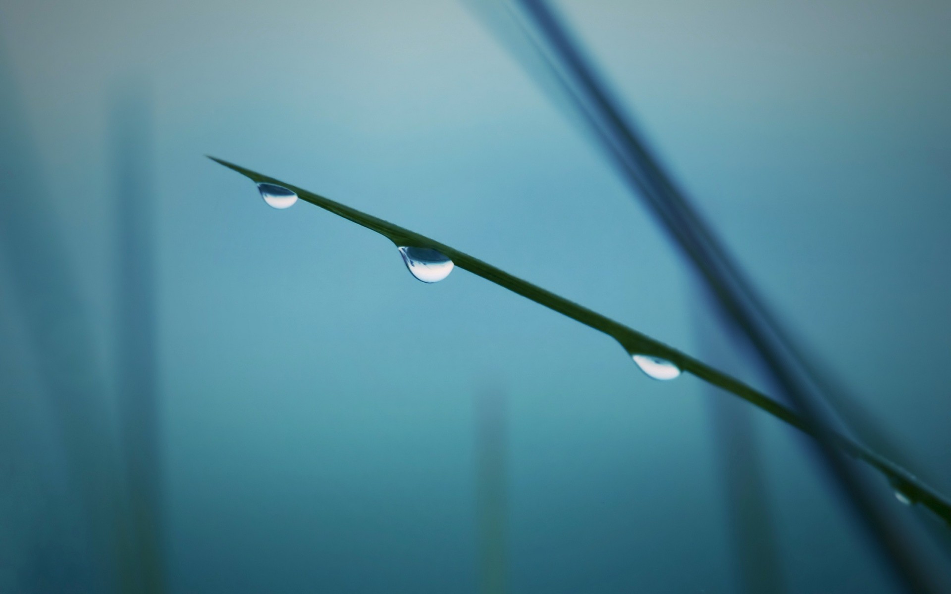 Trois gouttes d'eau sur les feuilles vertes sur fond flouTrois gouttes d'eau sur les feuilles vertes sur fond flou