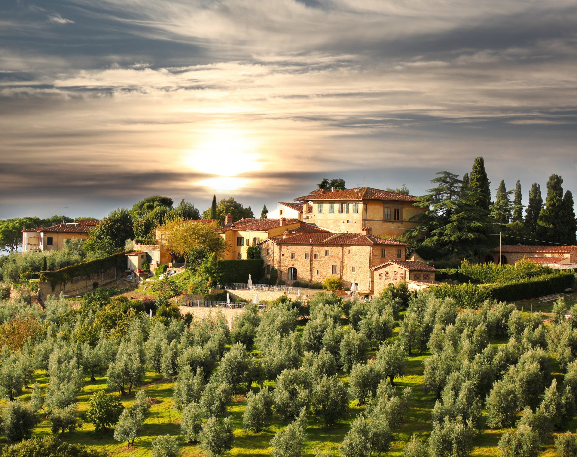 Paysage de beau coucher de soleil dans les nuages en toscanePaysage de beau coucher de soleil dans les nuages en Toscane
