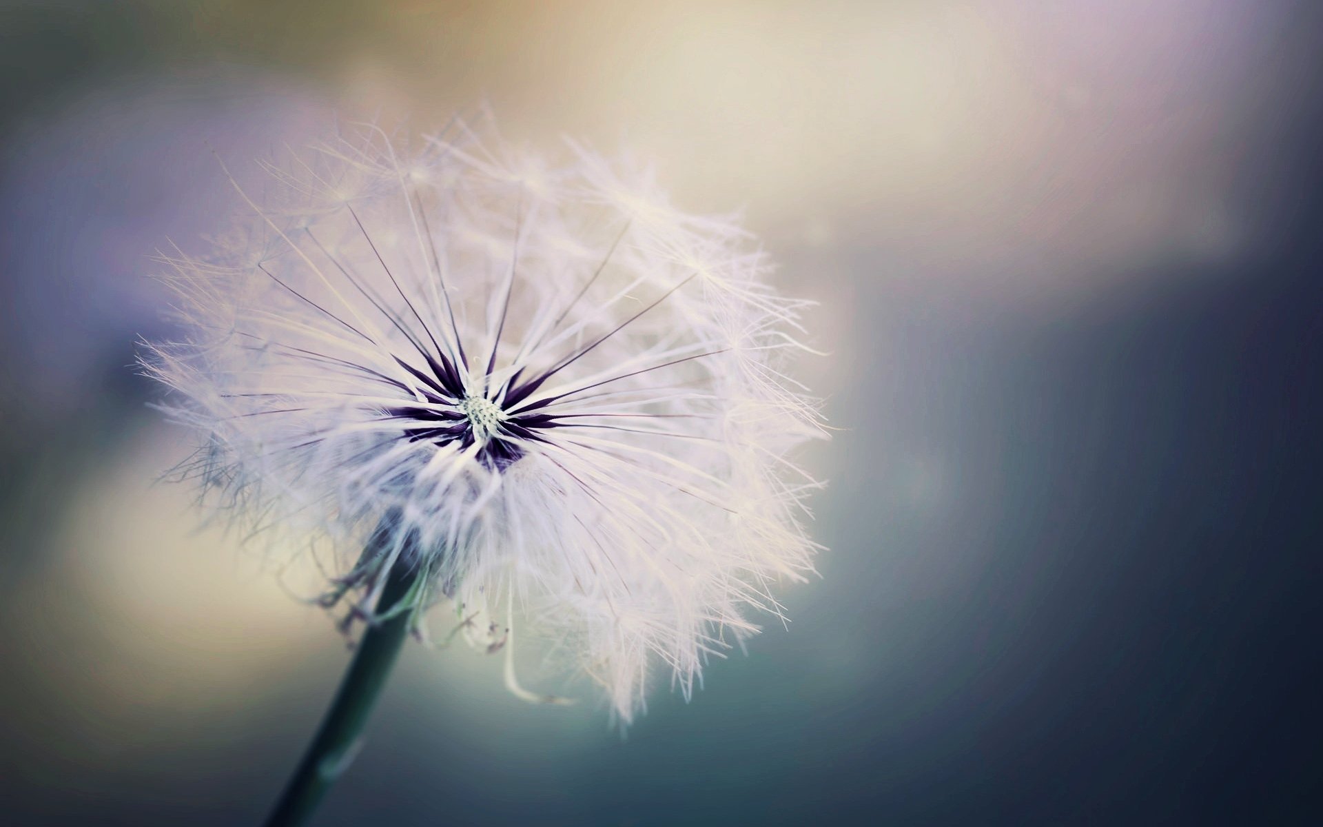 Belle fille blodinka souriant tenant un pissenlit dans ses mains