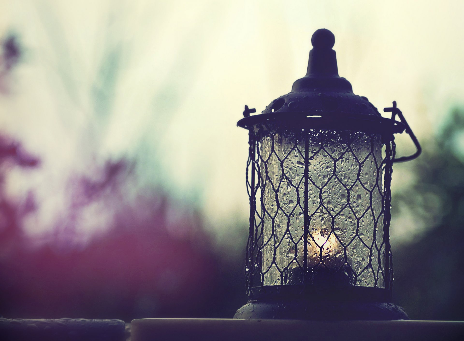 Lanterne avec une bougie sur un fond de ciel nuageuxLanterne avec une bougie sur un fond de ciel nuageux