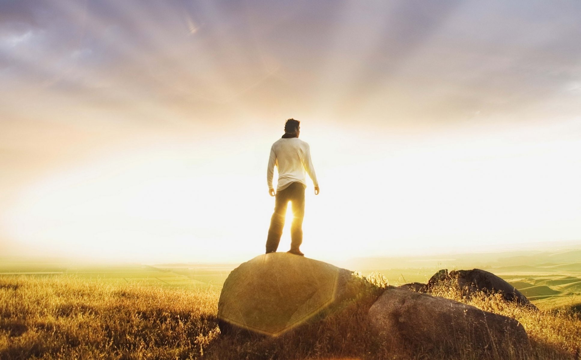 Homme debout sur une pierre sur un fond de soldat ascendantHomme debout sur une pierre sur un fond de soldat ascendant