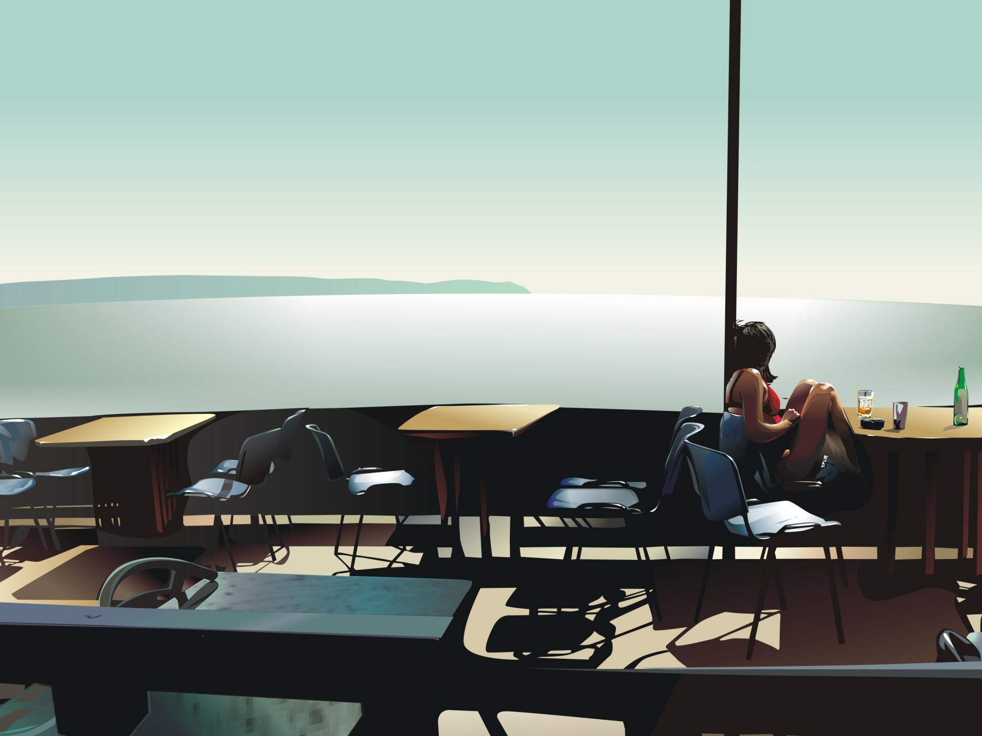 Jeune fille au repos sur la mer dans un restaurantJeune fille au repos sur la mer dans un restaurant