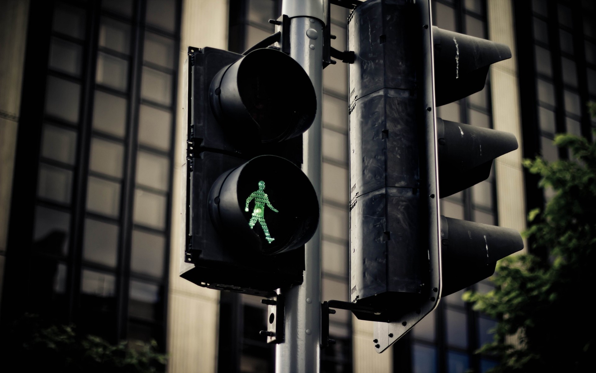Photo de gros plan d'un feu de circulation dans la villePhoto de gros plan d'un feu de circulation dans la ville