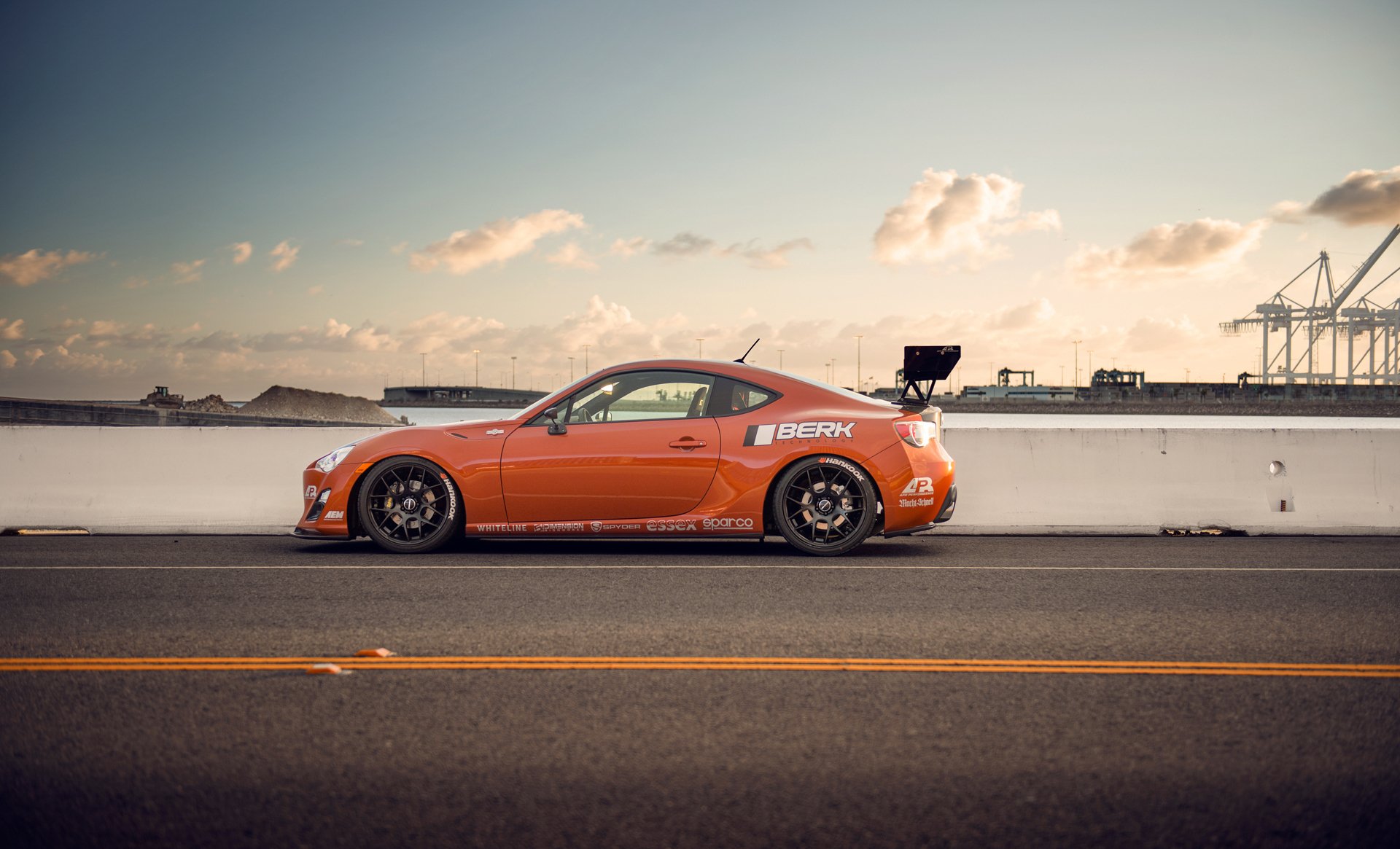 Voiture tuning nissan 370Z bleu vif sur fond d'architecture moderne